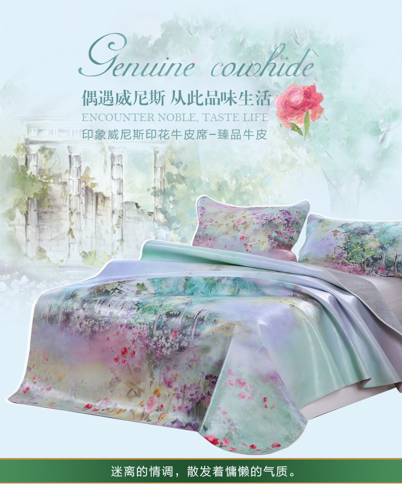 博洋家纺头层水牛皮凉席1.8m床三件套夏季双人真皮空调软席子