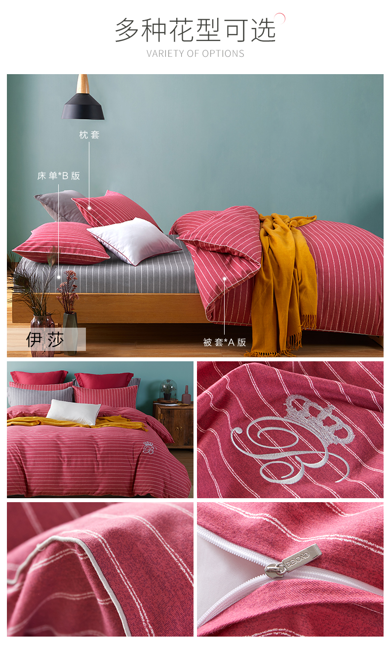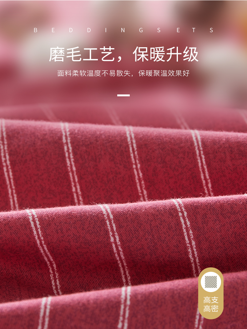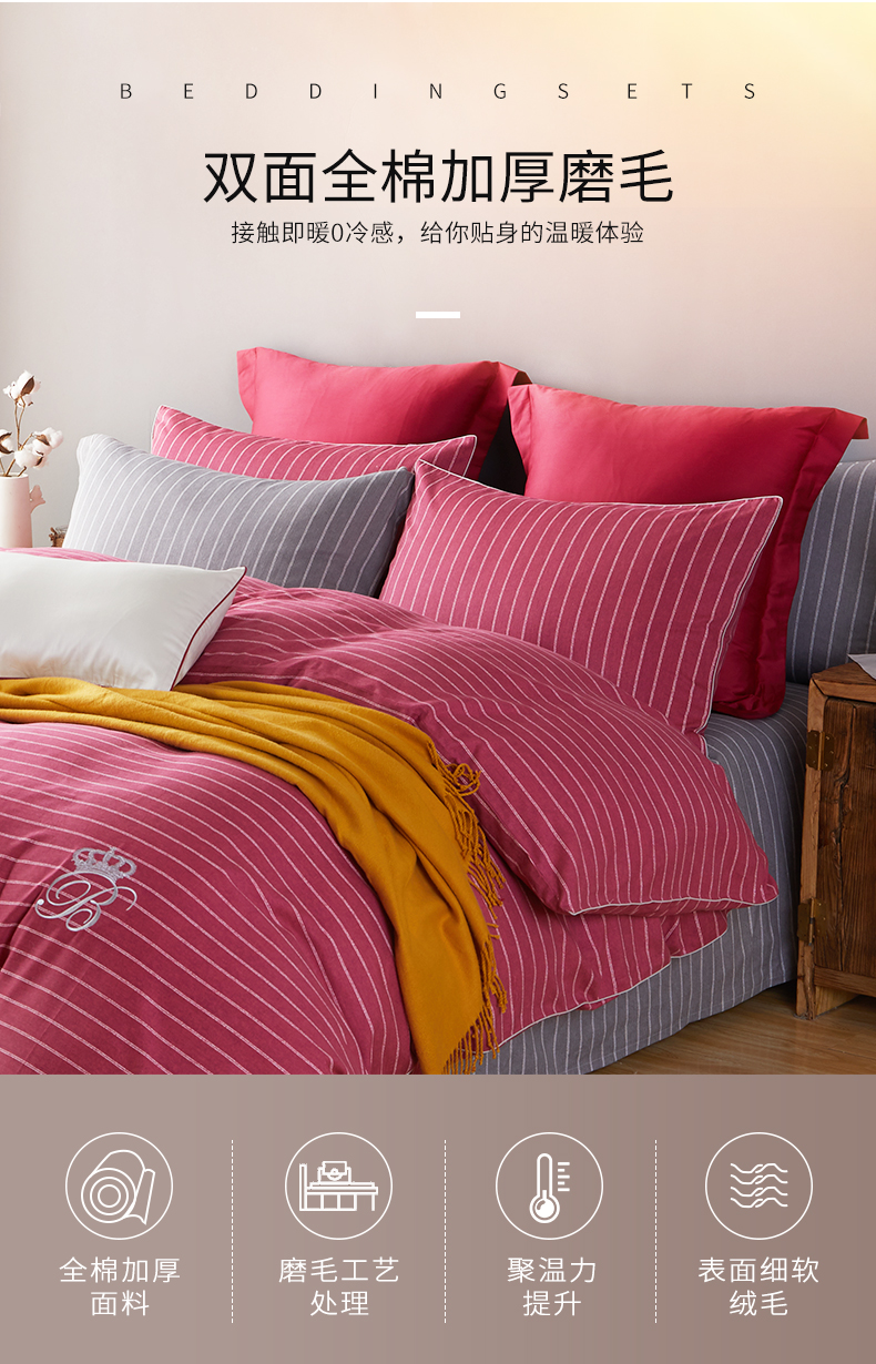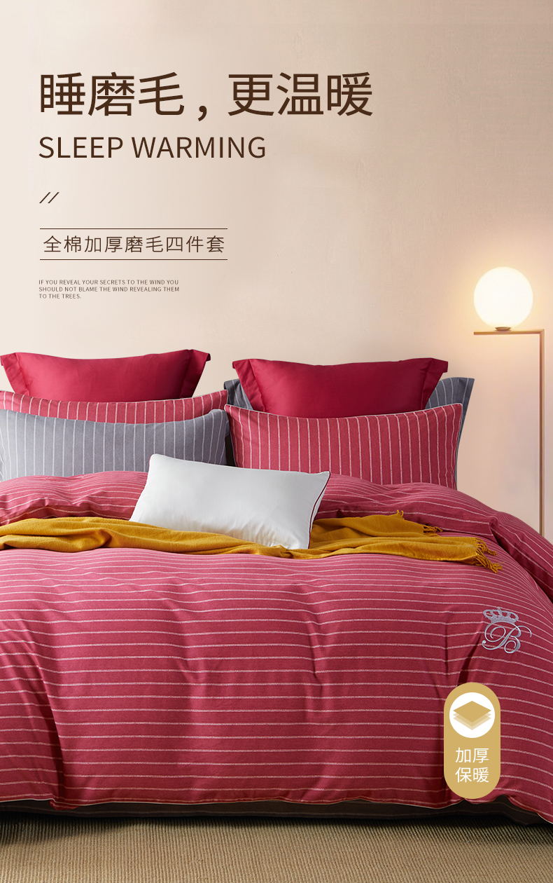 博洋家纺床上磨毛纯棉四件套全棉加厚床单三件套纯色被套冬季用品