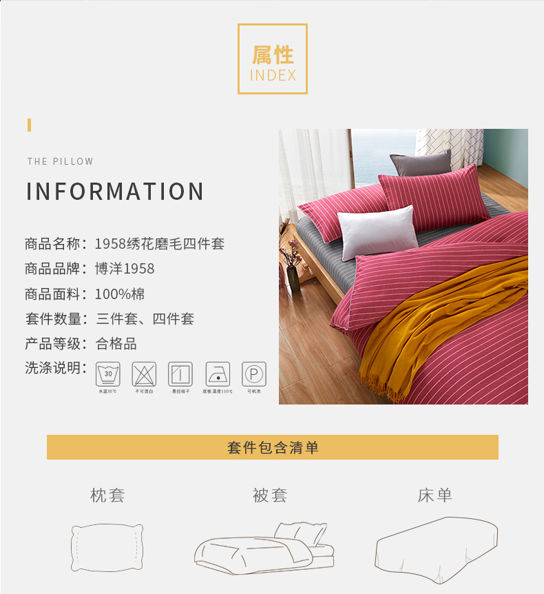 商品名称:博洋家纺床上磨毛纯棉四件套全棉加厚床单三件套纯色被套冬季用品
