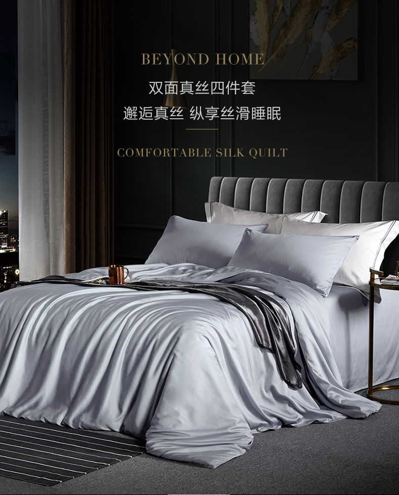 博洋19姆米双面纯色真丝四件套高端桑蚕丝床单被套床上用品春夏