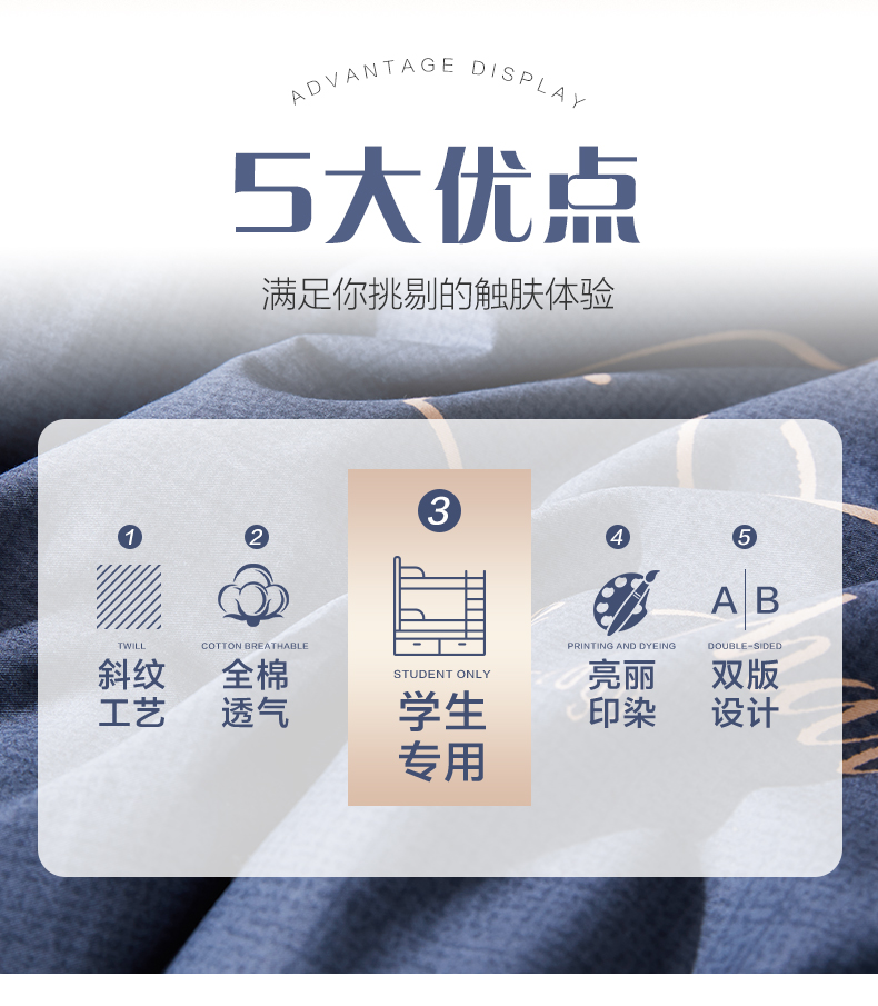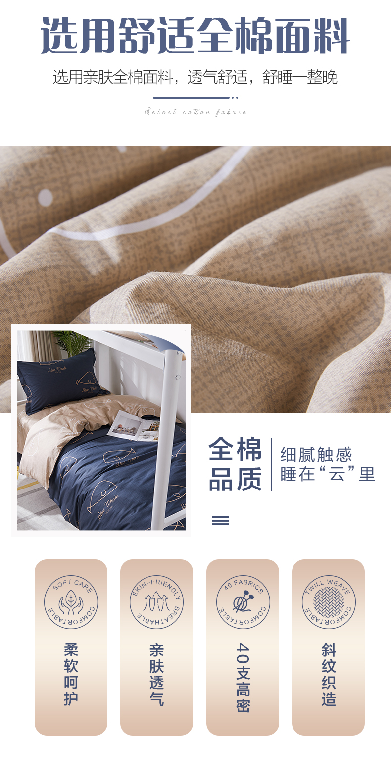 规格尺寸 | 1.2米:被套150*210cm*1,床单200*240cm*1, 枕套48*74cm*1 | |||