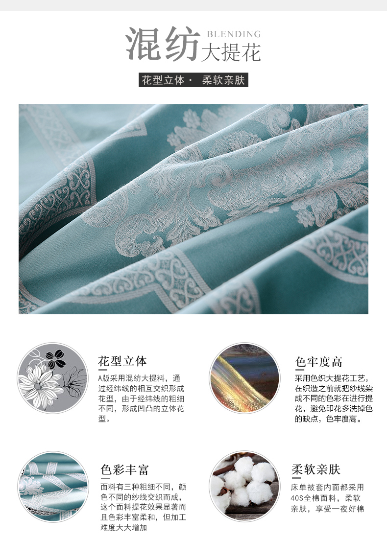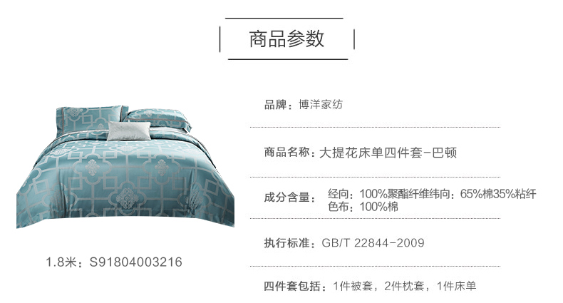 商品名称:博洋家纺混纺贡缎大提花四件套床上用品被套床单简约欧式裸睡亲肤