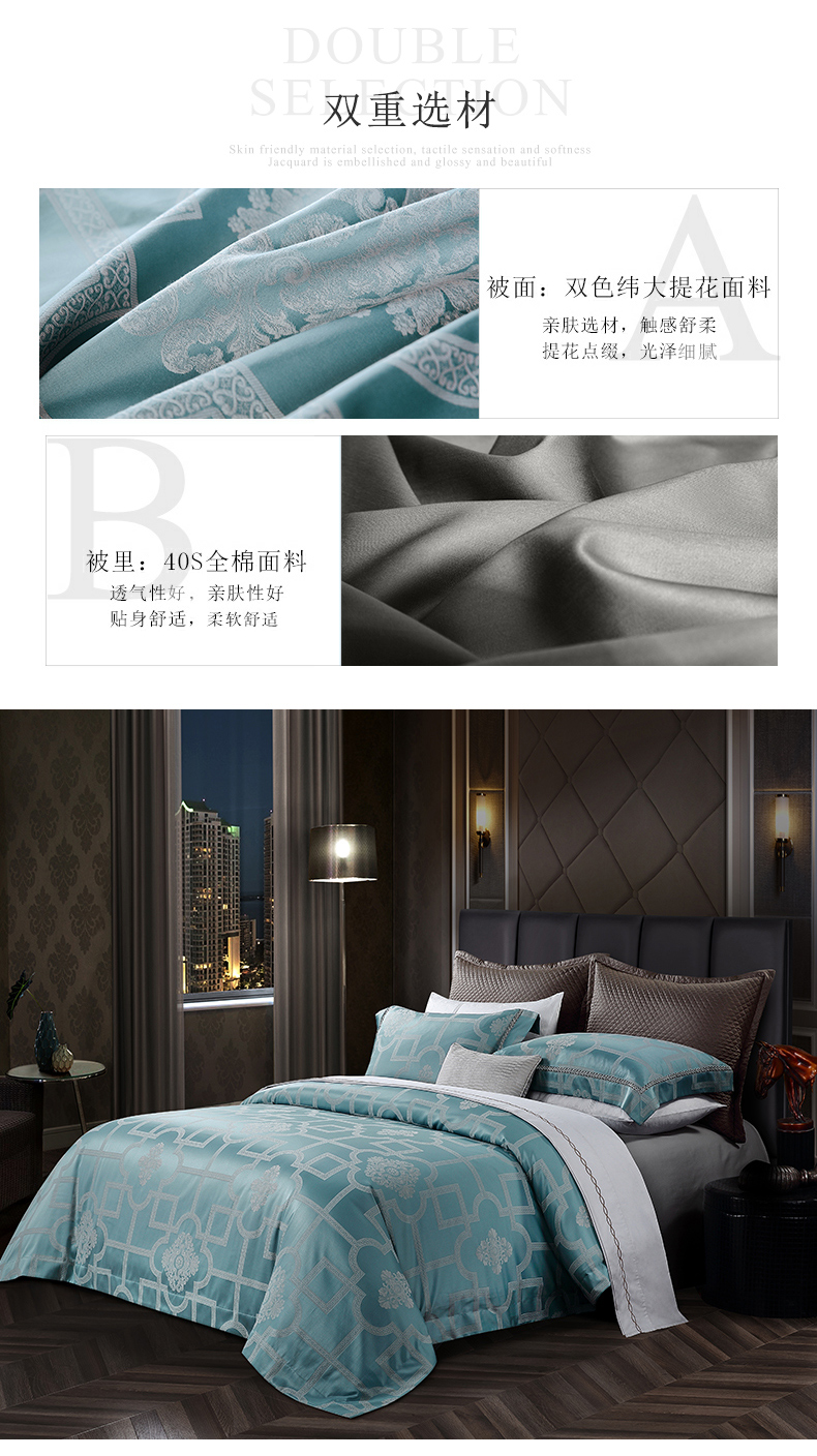 博洋家纺混纺贡缎大提花四件套床上用品被套床单简约欧式裸睡亲肤