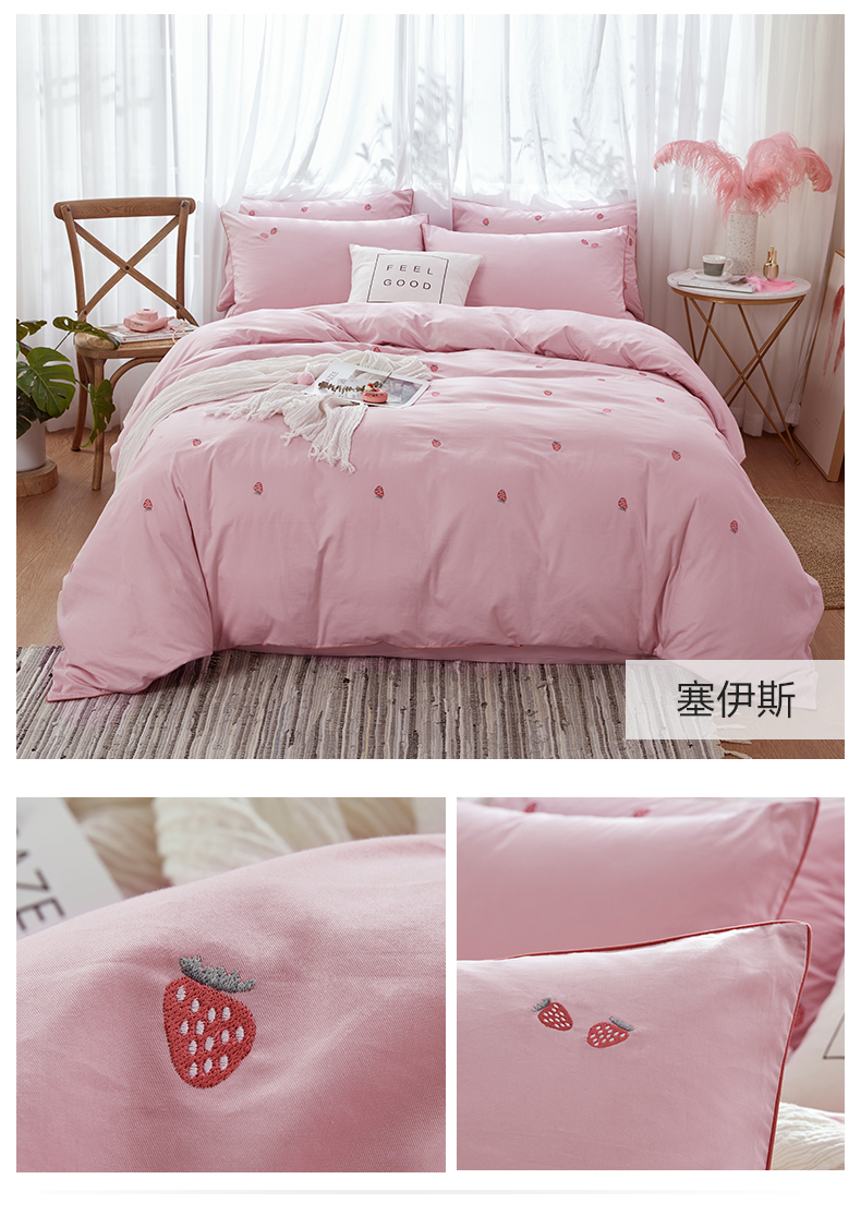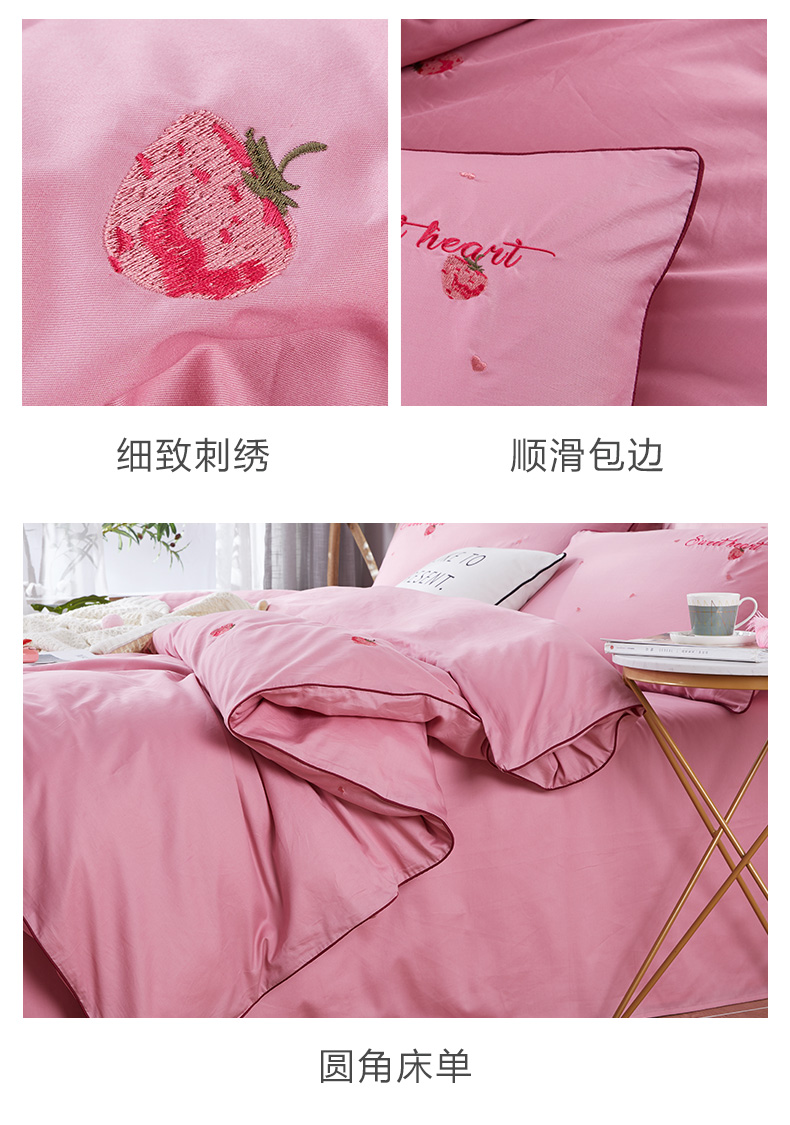 商品名称:博洋家纺冬季全棉纯棉四件套刺绣草莓简约床单被套被子床上用品