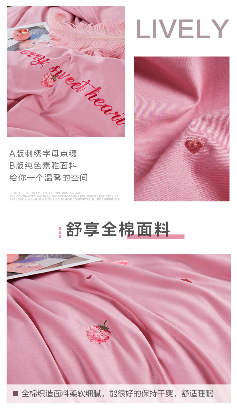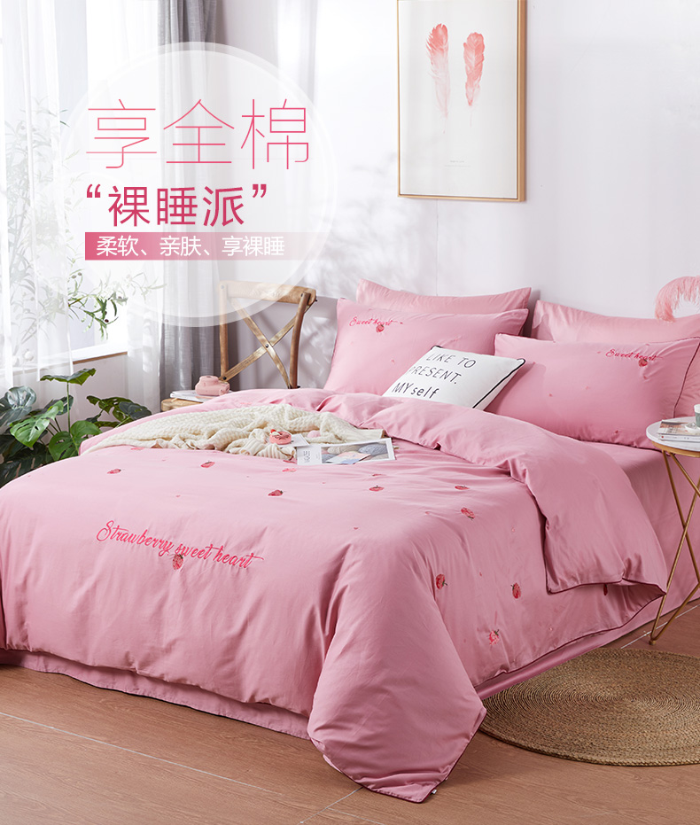 博洋家纺冬季全棉纯棉四件套刺绣草莓简约床单被套被子床上用品