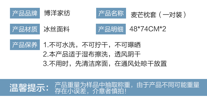 商品名称:博洋凉席枕套冰丝枕芯套单人双人枕套夏天夏季凉爽枕头套一对装