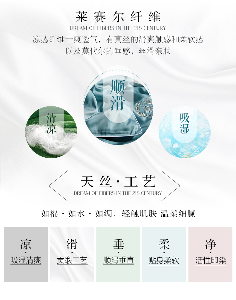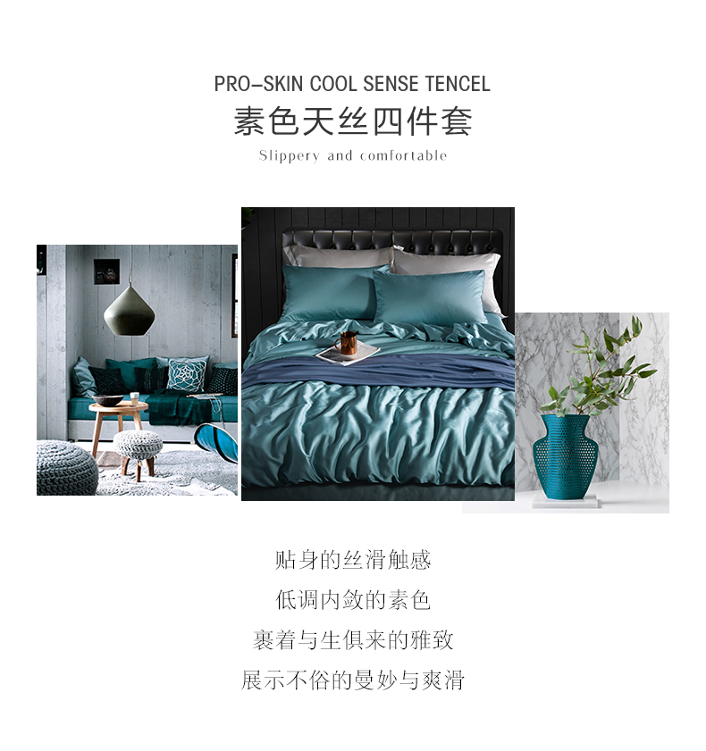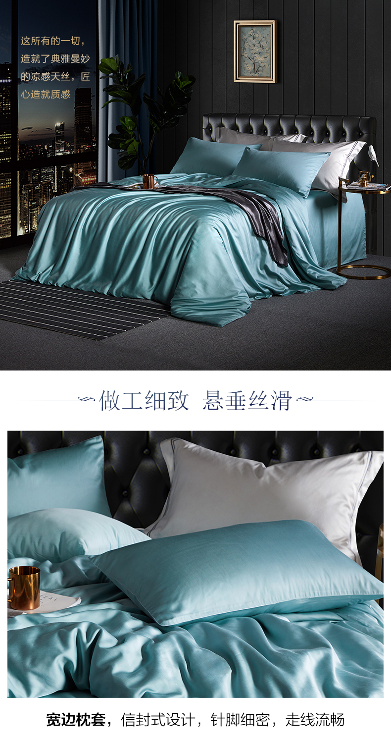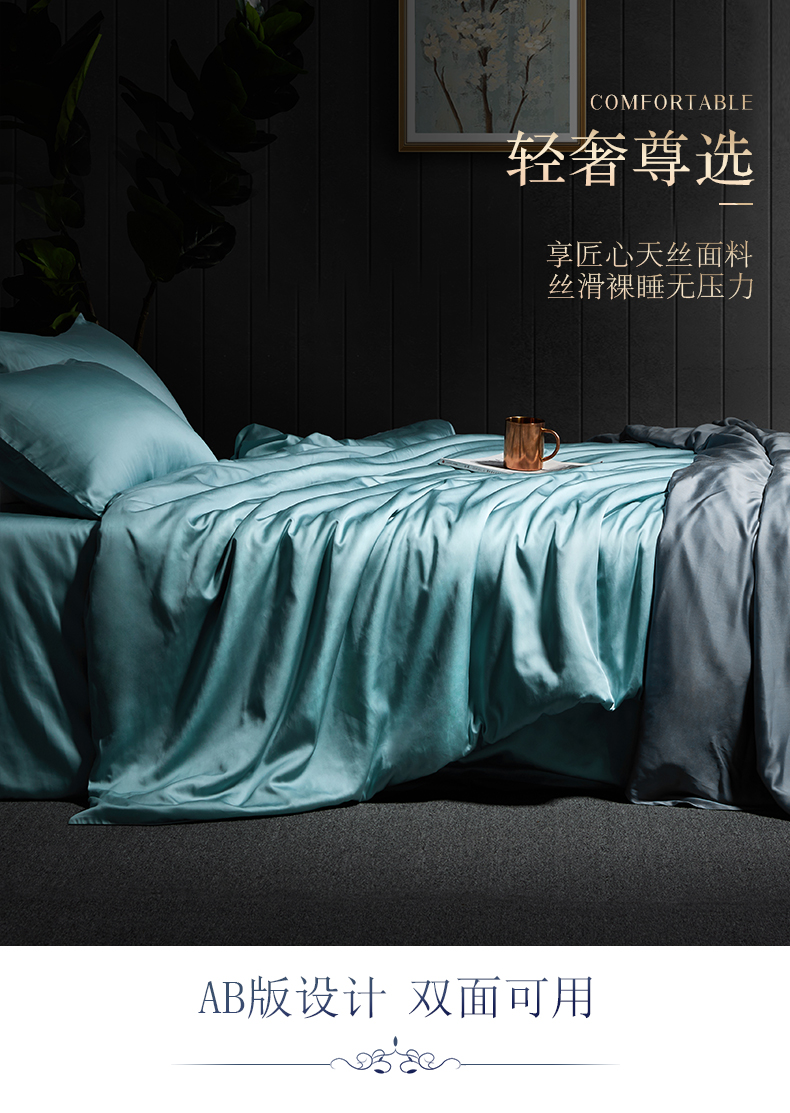 博洋家纺四件套裸睡夏季冰丝天丝被套亲肤简约床上用品