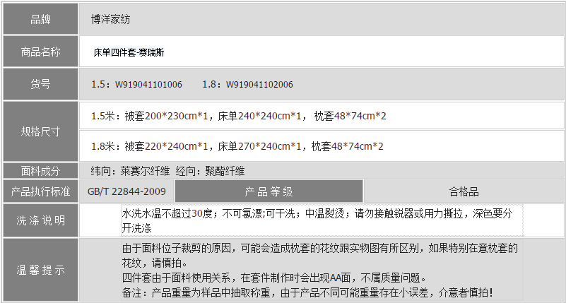 商品名称:博洋家纺四件套裸睡夏季冰丝天丝被套亲肤简约床上用品