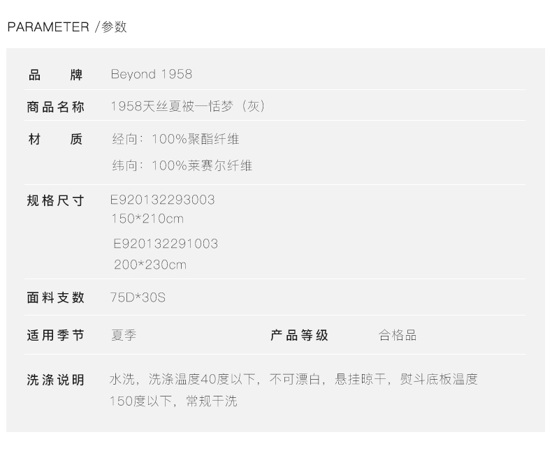 商品名称:博洋家纺天丝空调被简约夏凉被莱赛尔纤维夏被床上用品夏季薄被子