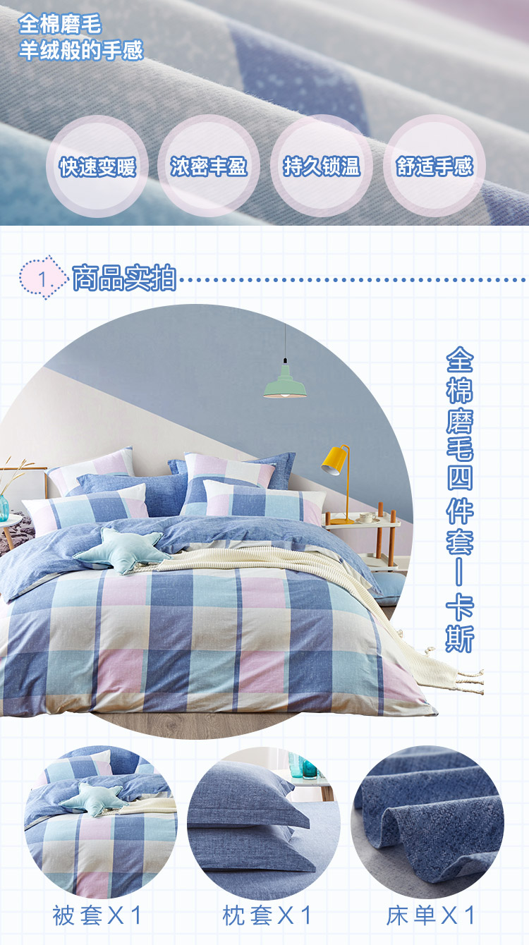 | 1.8米:被套220*240cm*1,床单260*240cm*1,枕套48*74cm*2 | ||||