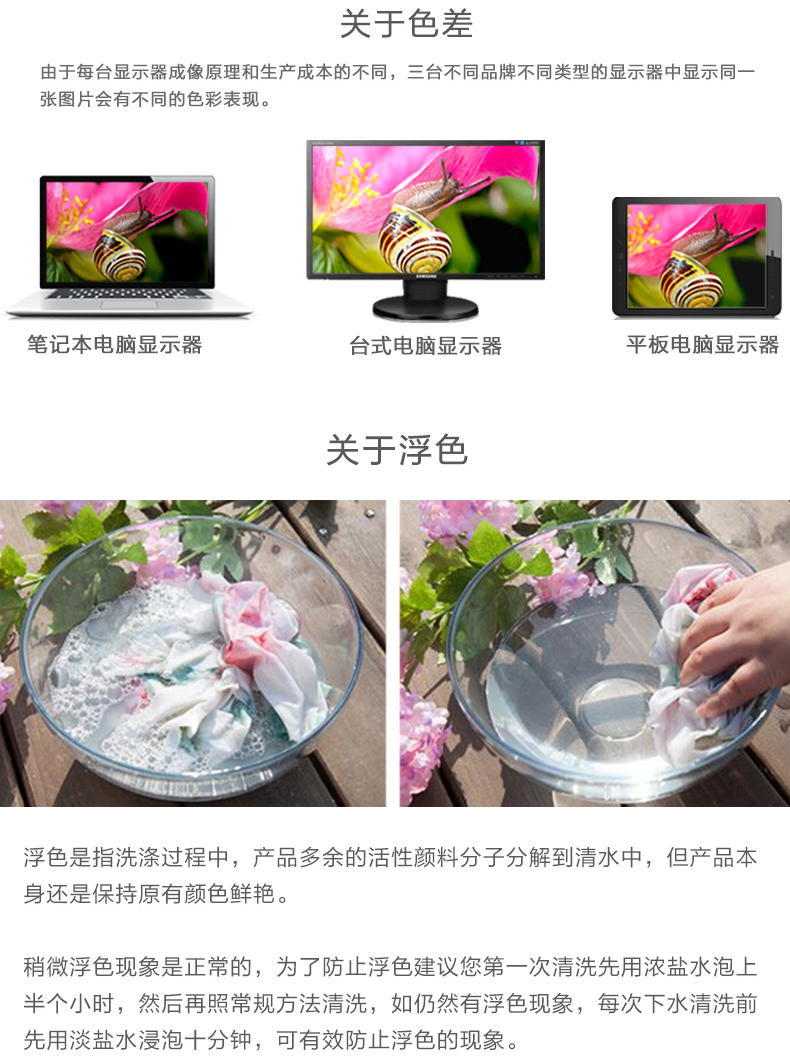 | 温 馨 提 示 | 由于面料位子裁剪的原因,在制作时会出现AA面,不属质量问题。备注:产品重量为样品中抽取称重,由于产品不同可能重量存在小误差,介意者慎拍! | |||