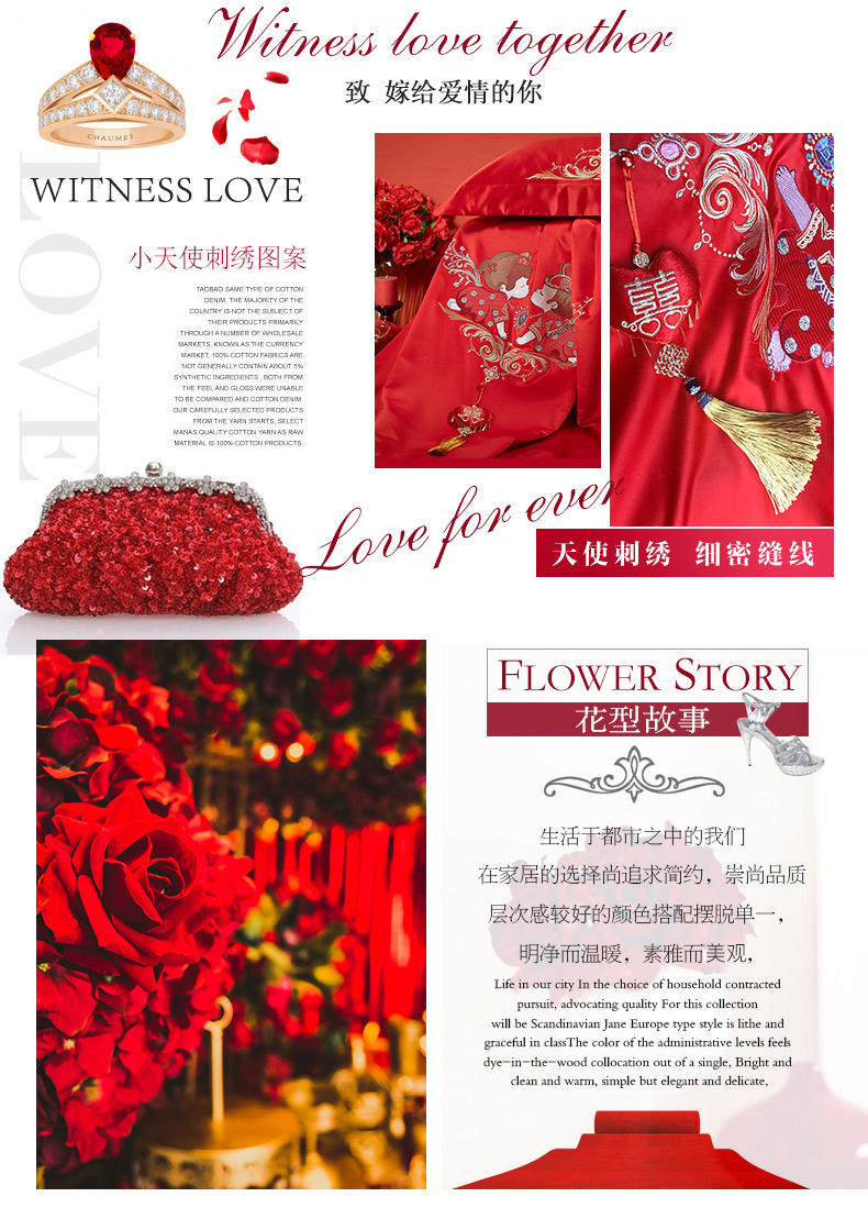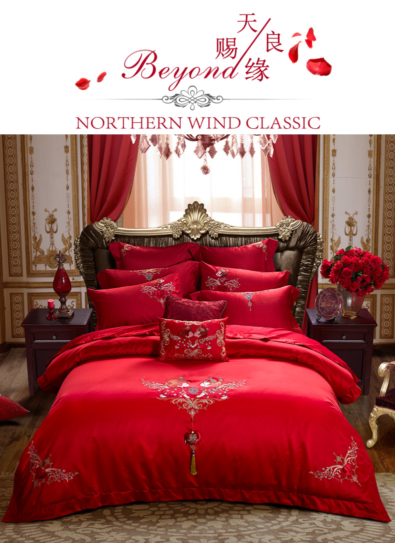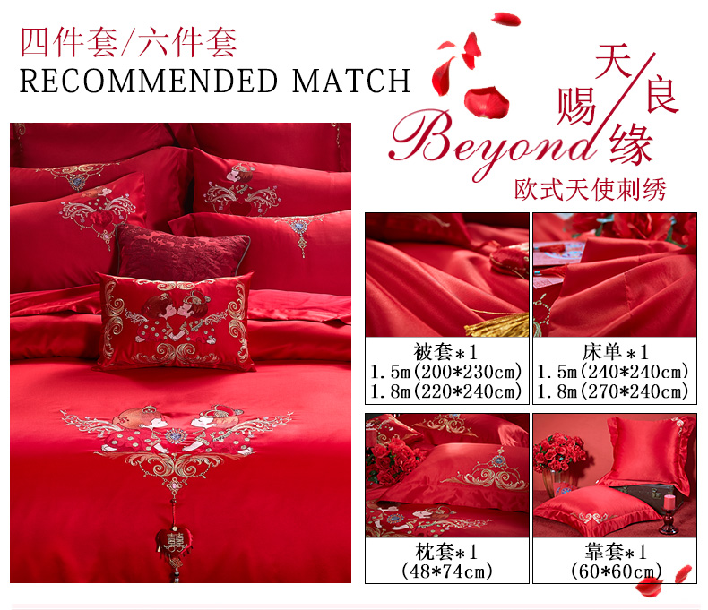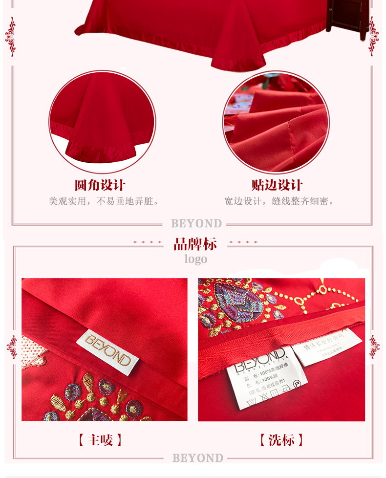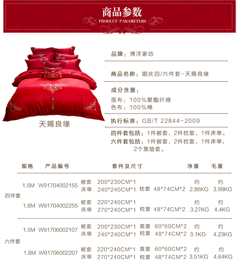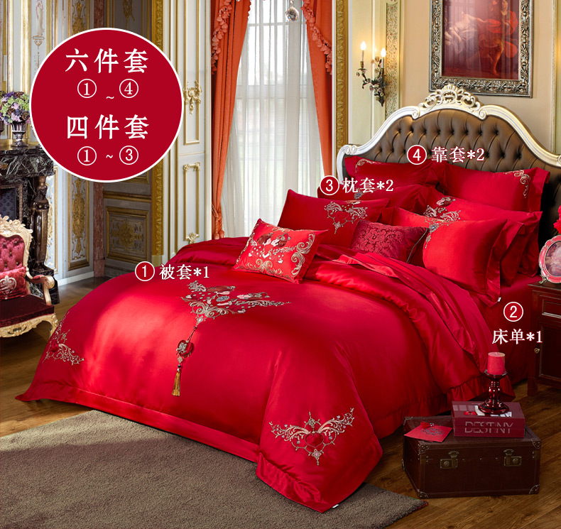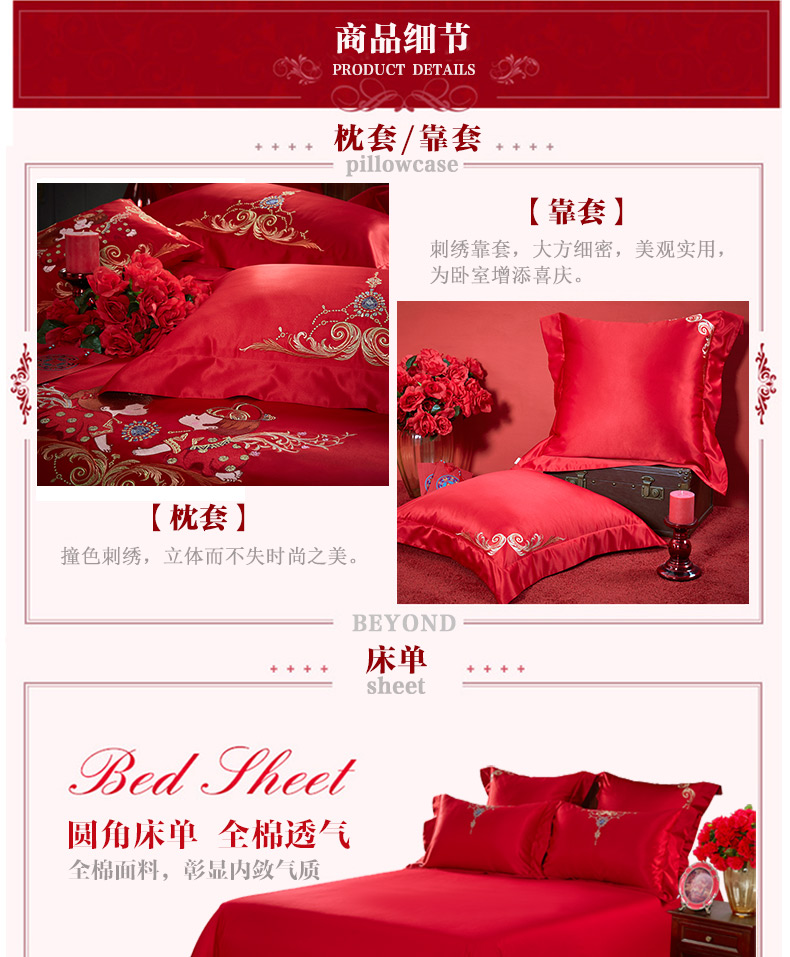 商品名称:博洋家纺婚庆四件套结婚六件套大红刺绣红色四件套床上用品四件套