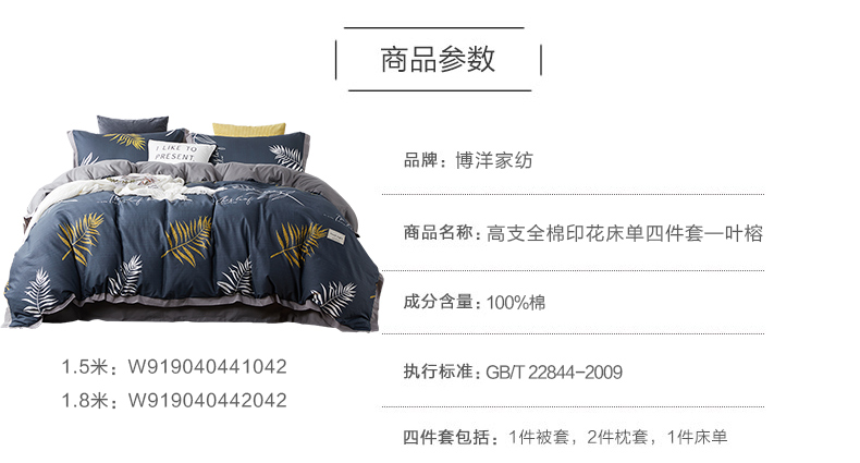 商品名称:博洋家纺四件套全棉纯棉简约加厚北欧风床上用品ins床单女生被套
