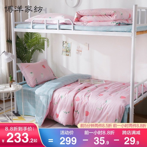 | 规格尺寸 | 1.2米:被套150*210cm*1,床单200*240cm*1, 枕套48*74cm*1 | |||