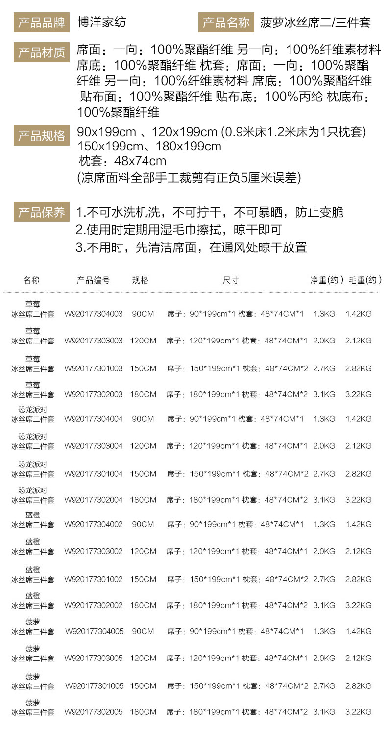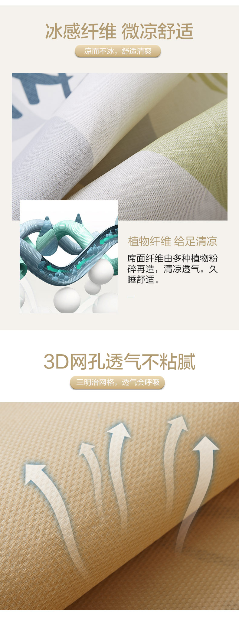 商品名称:博洋家纺儿童凉席1.5米三件套夏季冰丝凉席可折叠学生席子1.2