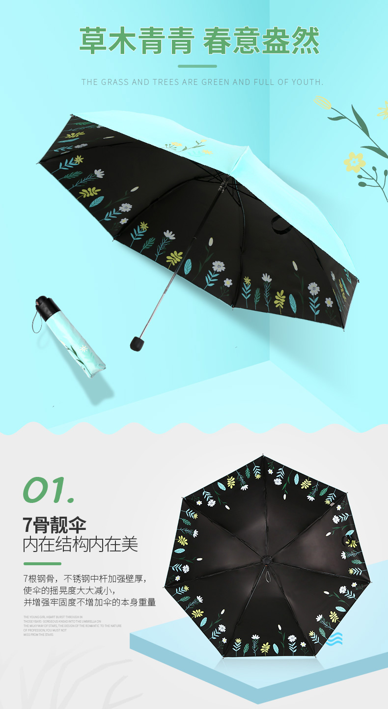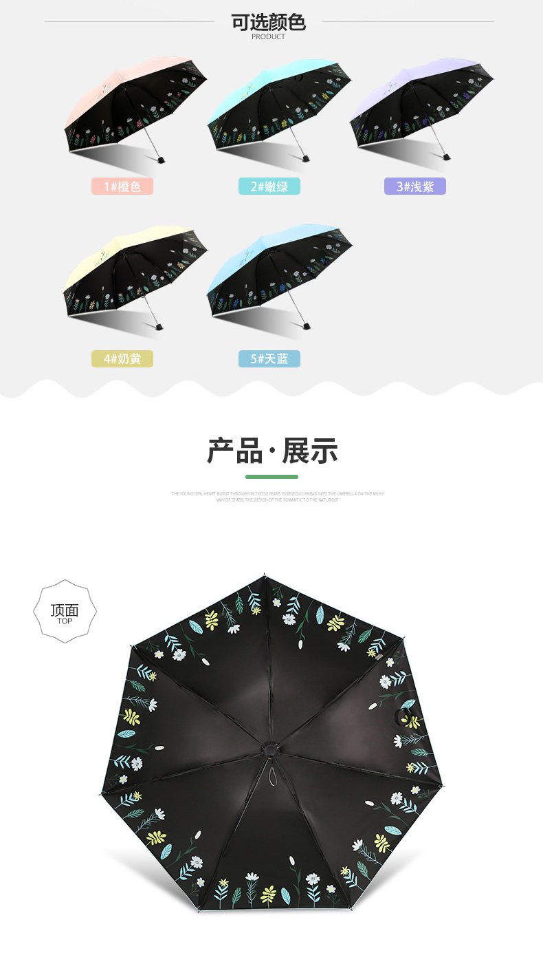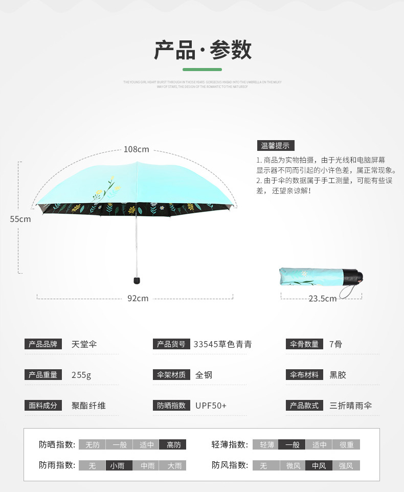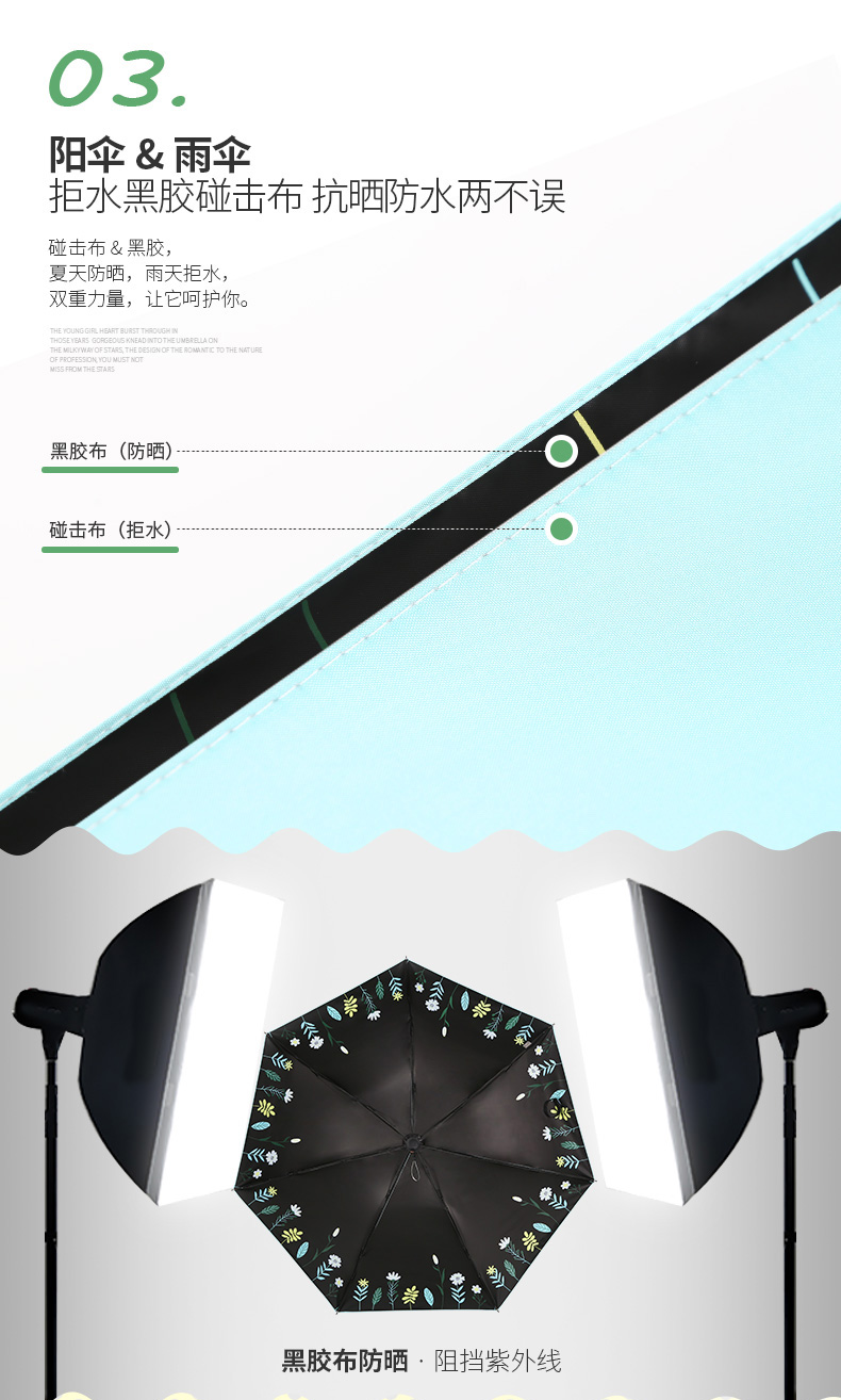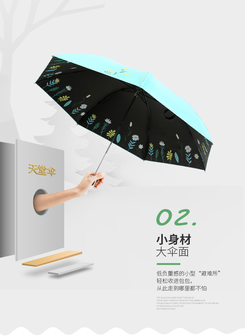 商品名称:天堂伞超轻黑胶防晒太阳伞晴雨伞小清新防紫外线遮阳伞折叠伞女
