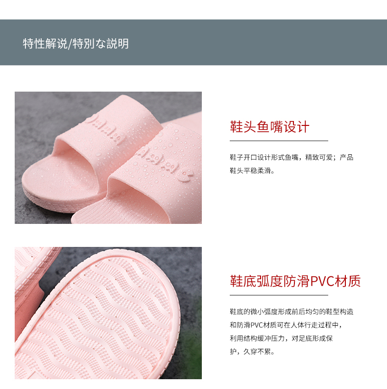 商品名称:1鱼嘴室内家用软底拖鞋浴室洗澡防滑情侣外穿凉拖鞋女夏季男家居鞋