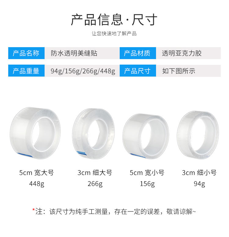 商品名称:1厨房透明防霉贴家用自粘水池边缝隙防水贴洗手台水槽贴挡水条