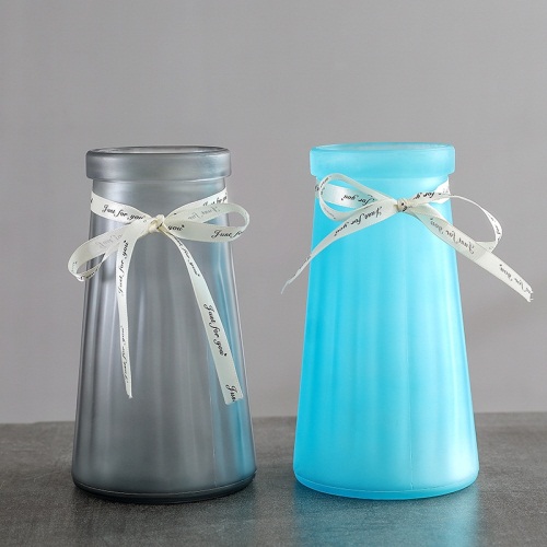 6A磨砂花瓶欧式彩色玻璃透明客厅摆件插花水培富贵竹鲜花干花装饰